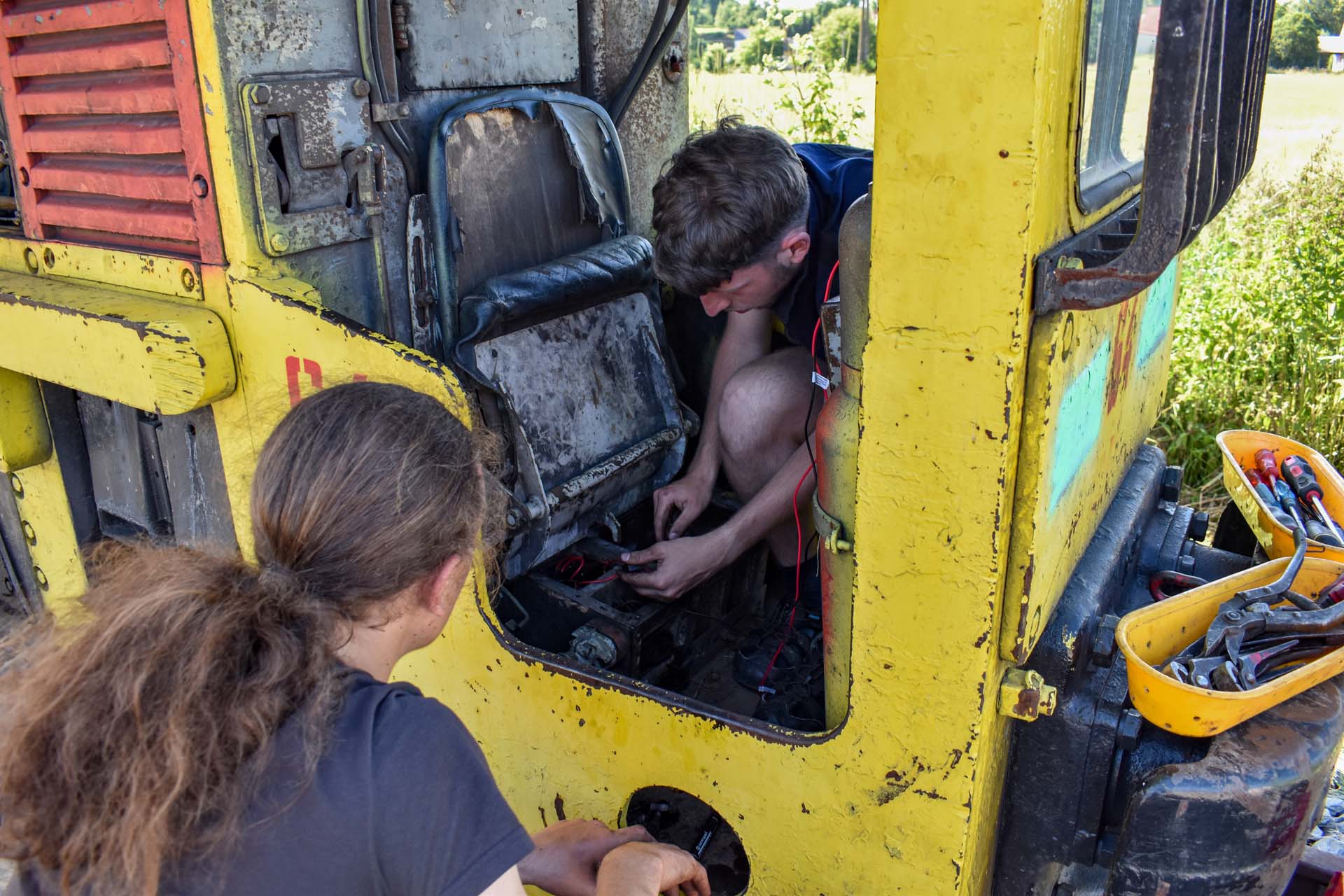 Lokomotiva a 2 čerstvě nakolejené vozy