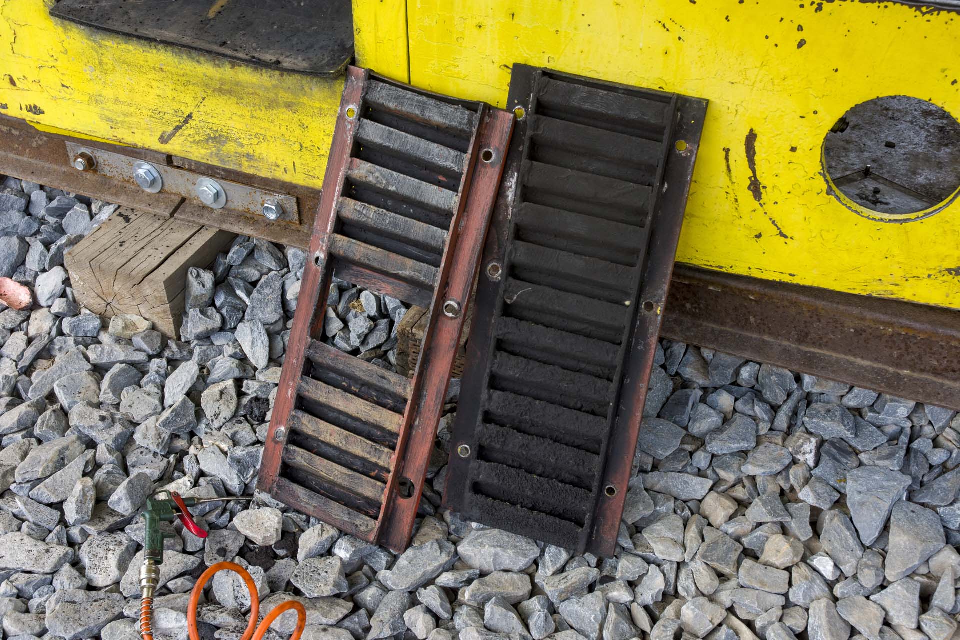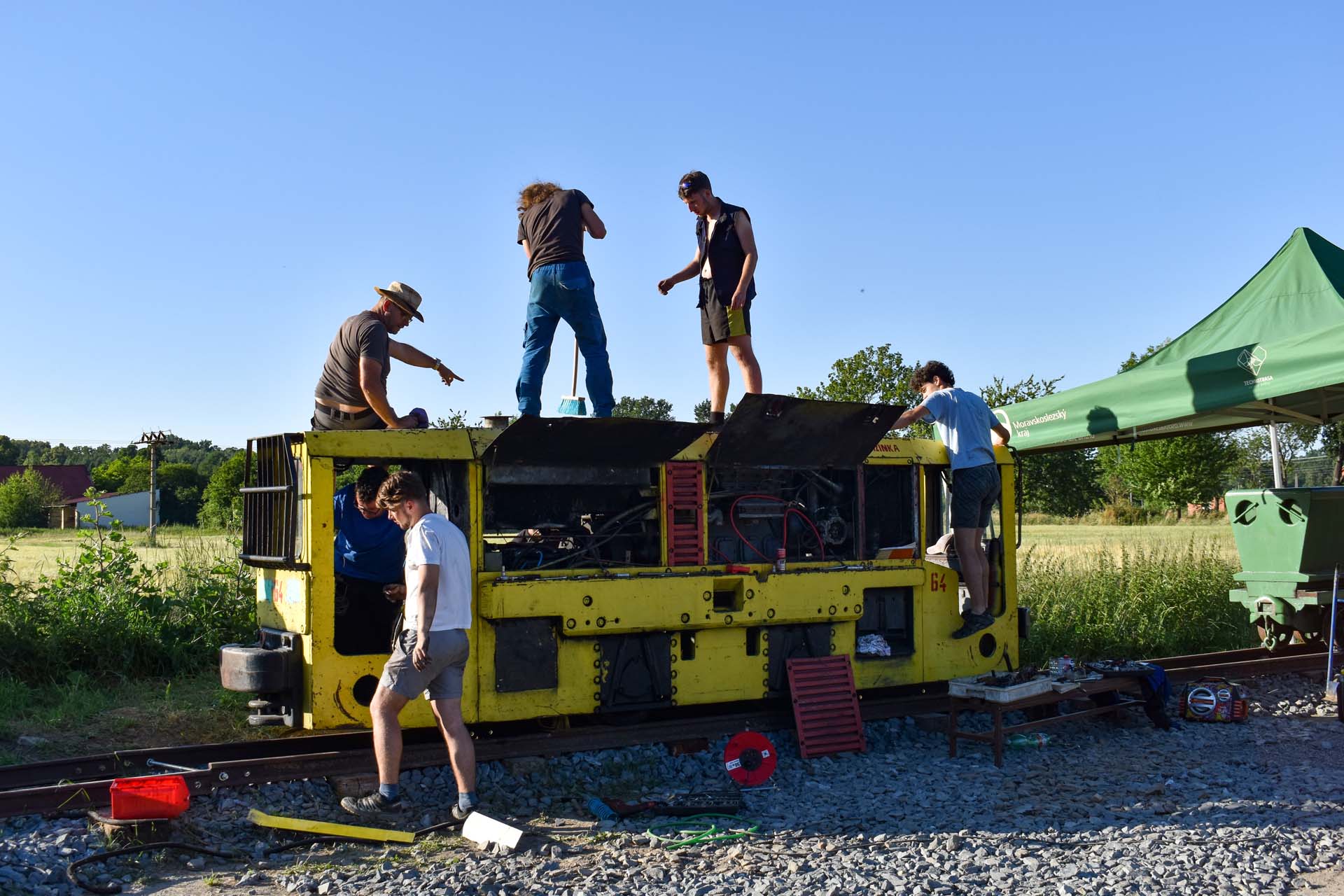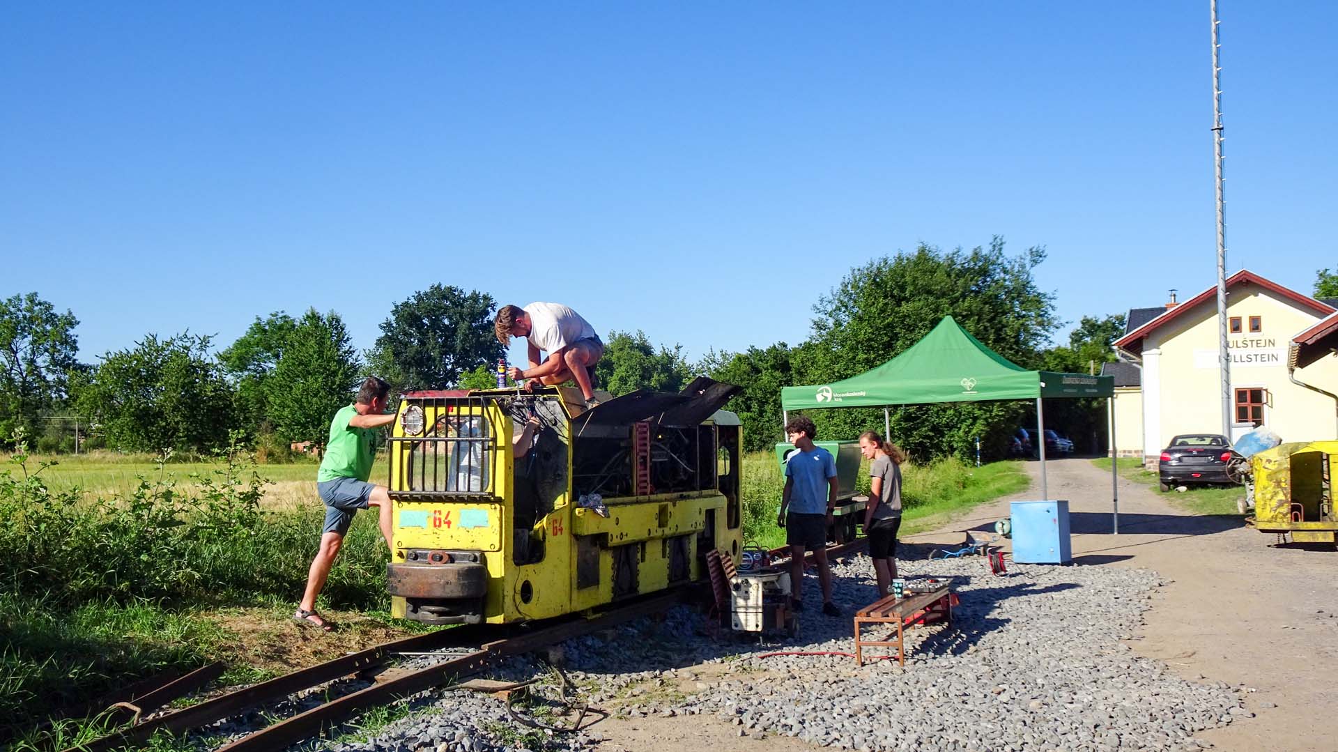 Již vyložená důlní lokomotiva na nádraží v Bohušově