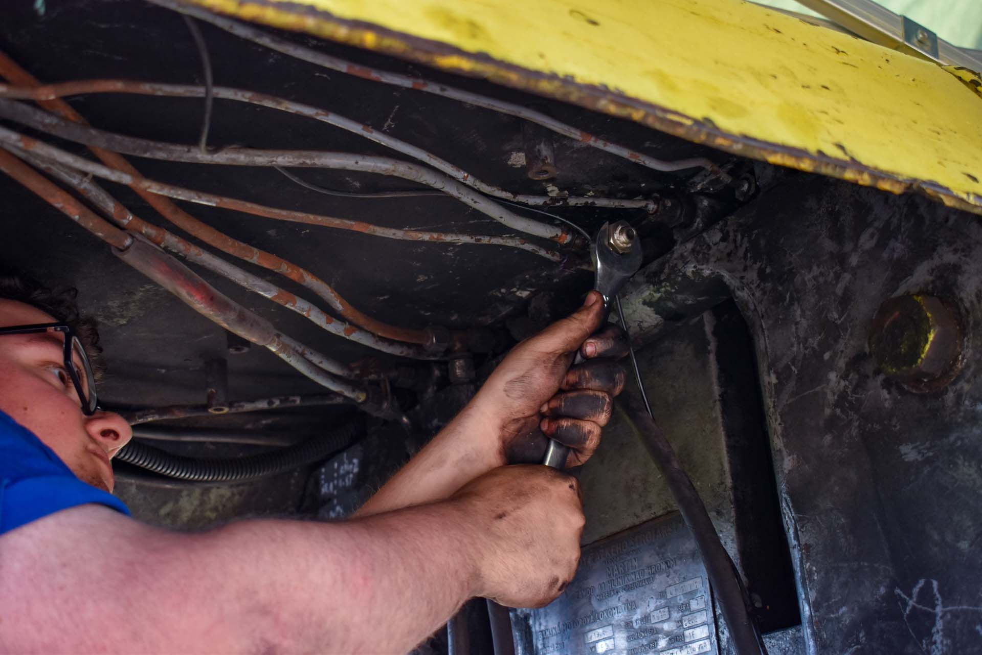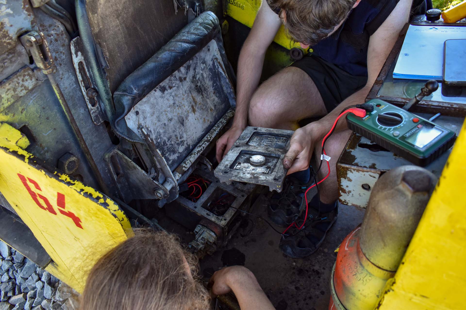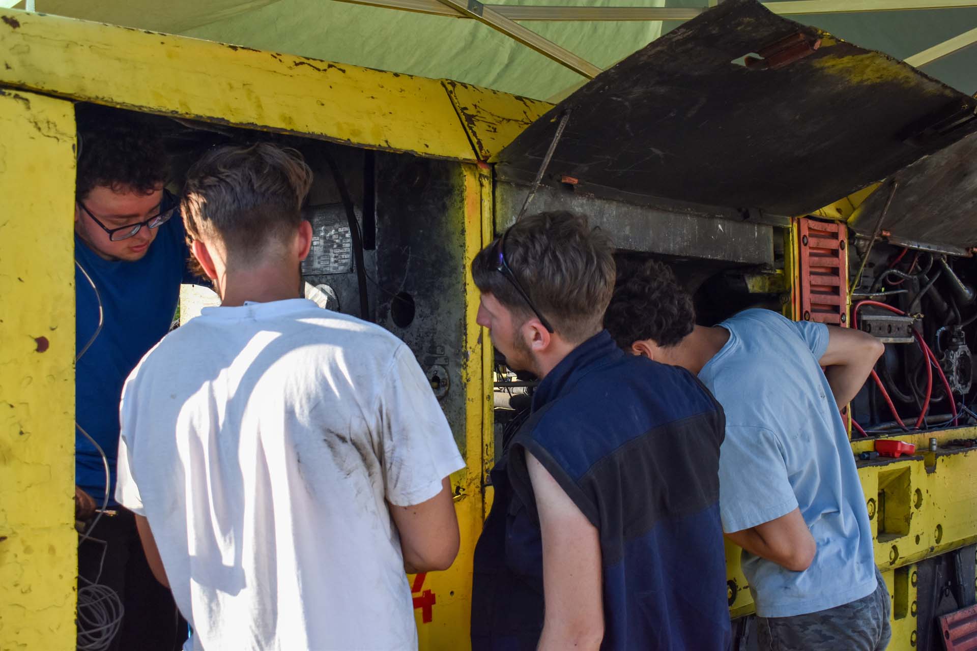 Vykládka důlní lokomotivy na nádraží v Bohušově