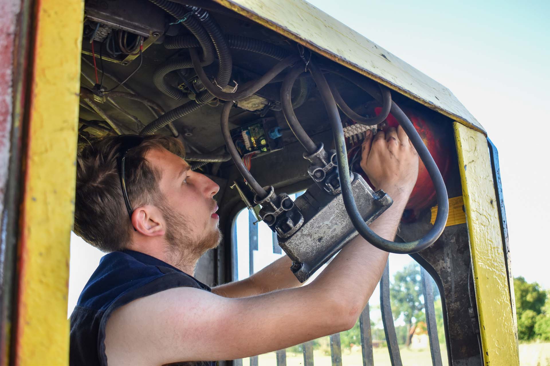 Lokomotiva a 2 čerstvě nakolejené vozy