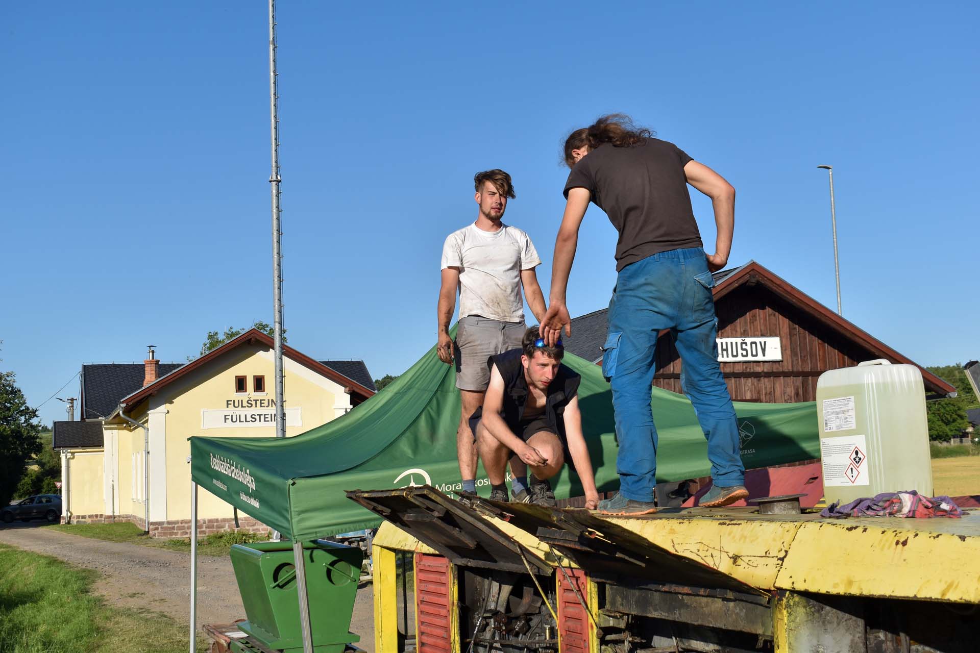 Přípravné práce na vykládku lokomotivy v Bohušově