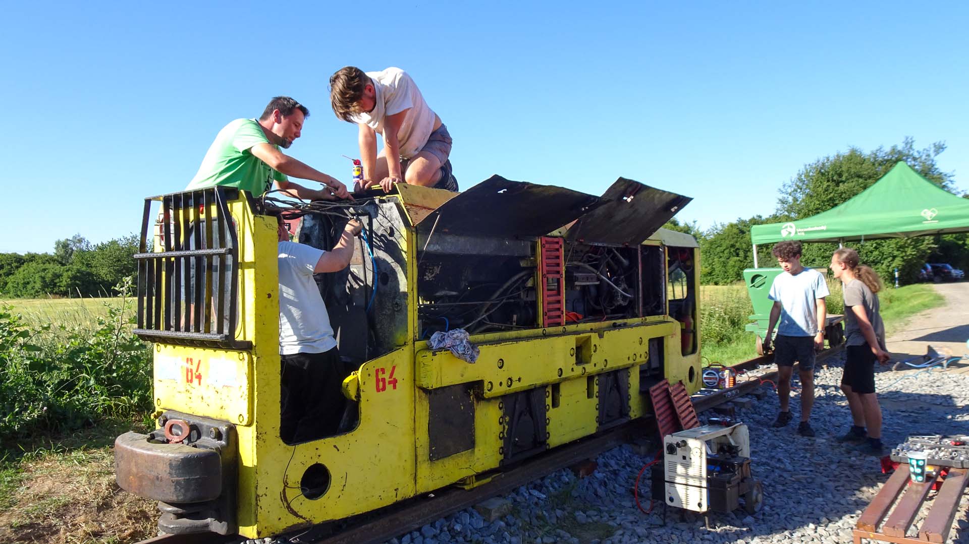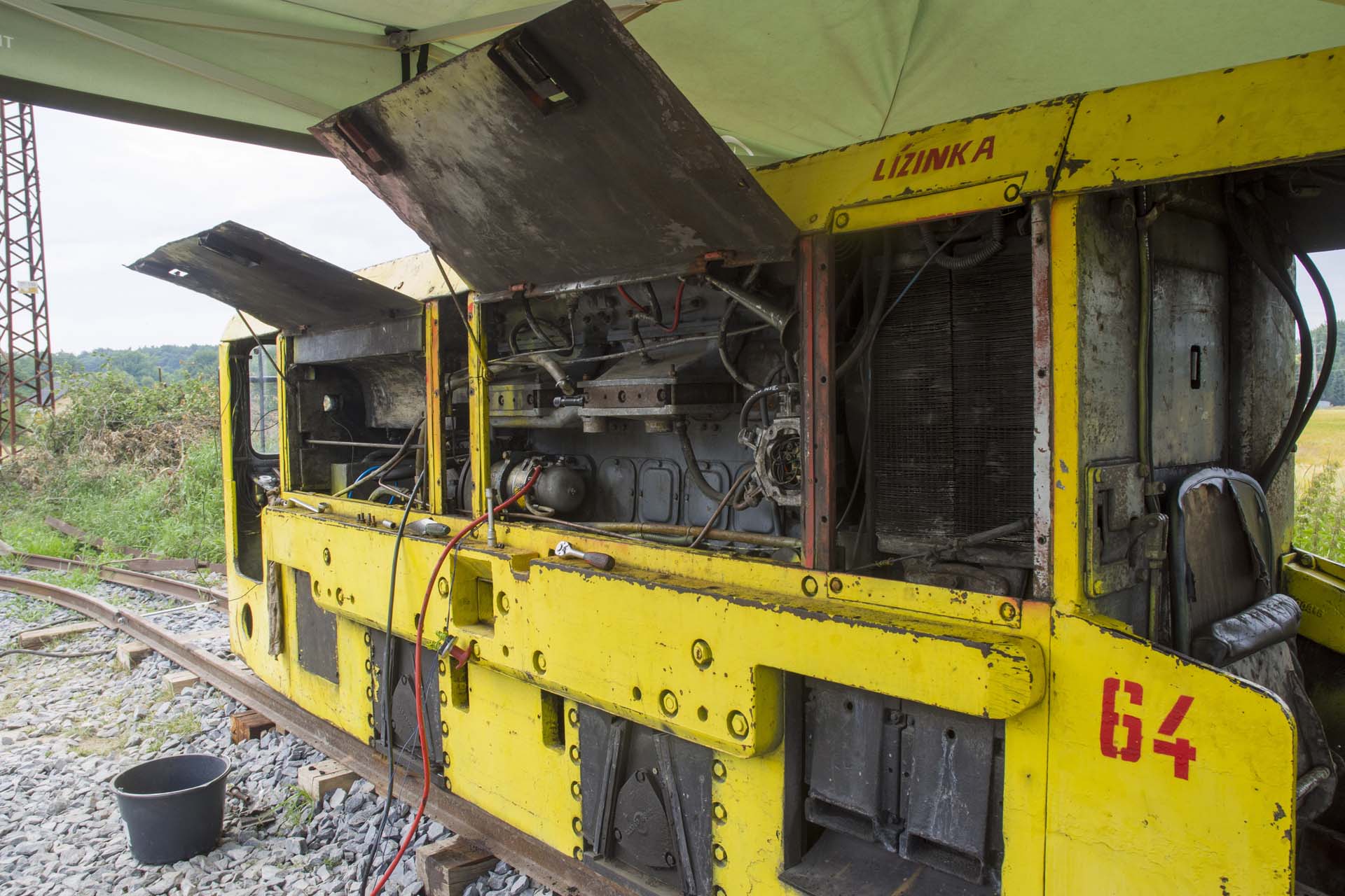 Již vyložená důlní lokomotiva na nádraží v Bohušově